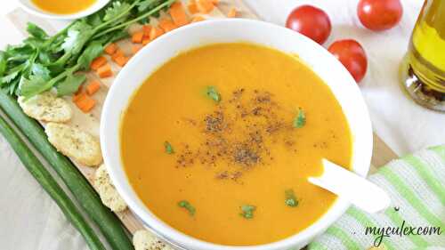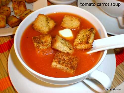 Tomato and carrot soup is a low calories, delicious soup which is healthy and full of vitamins.