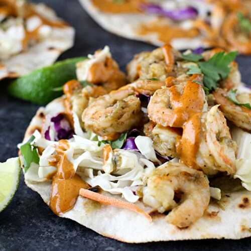 Restaurant quality creamy, slightly crunchy, and easy shrimp tacos with creamy chipotle sauce in less than 15 minutes.