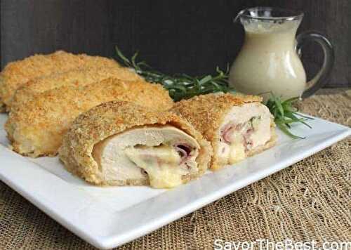 This recipe of tarragon chicken cordon blue with dijon cream sauce is tender, flavorful, and oozing with Gruyere cheese.