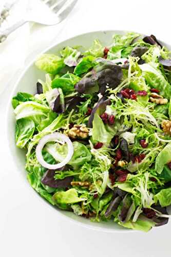 A crisp tossed green salad with Gorgonzola and cranberries.