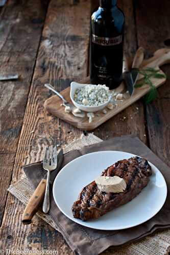Beer Marinated Steak with Porter Gorgonzola Butter