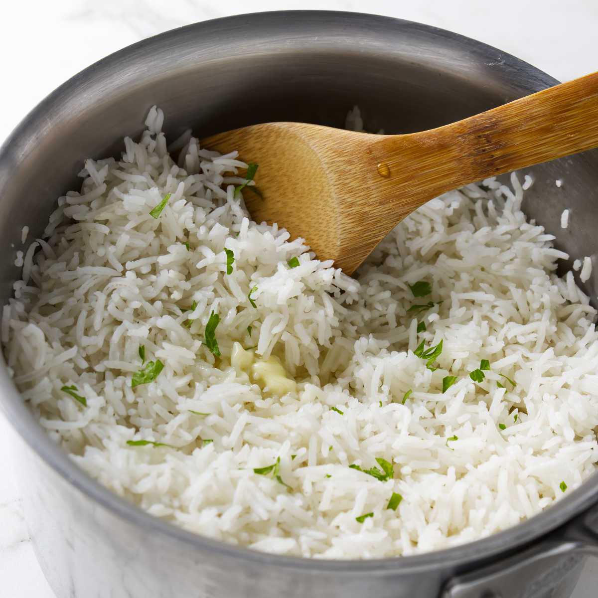 This light and fluffy coconut rice is the perfect blend of coconut milk, garlic, and fresh lime, creating a nicely balanced rice to accompany many meals.