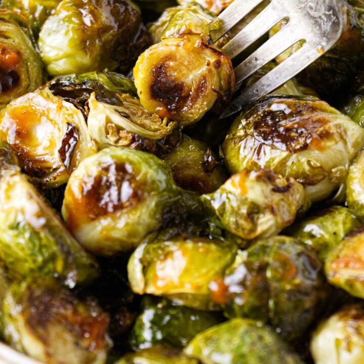 My quick balsamic roasted brussel sprouts are tossed with olive oil, tangy balsamic vinegar, and sweet honey – the flavor is out of this world! These delightfully crispy brussel sprouts are the ultimate easy veggie side dish!