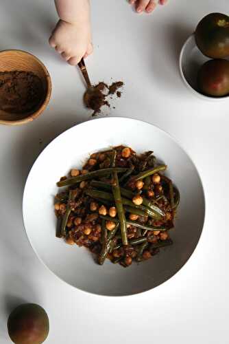 Instant Pot Lebanese Braised Green Beans in less than 10 minutes! Flavored with aromatics and warm spices, we love the simplicity of this vegetarian side.
