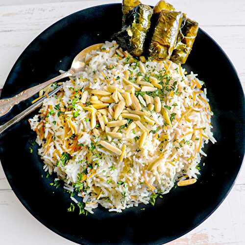 Lebanese vermicelli rice (riz b sha’riyeh) is a simple three-ingredient Middle Eastern staple made with rice and vermicelli pasta.
