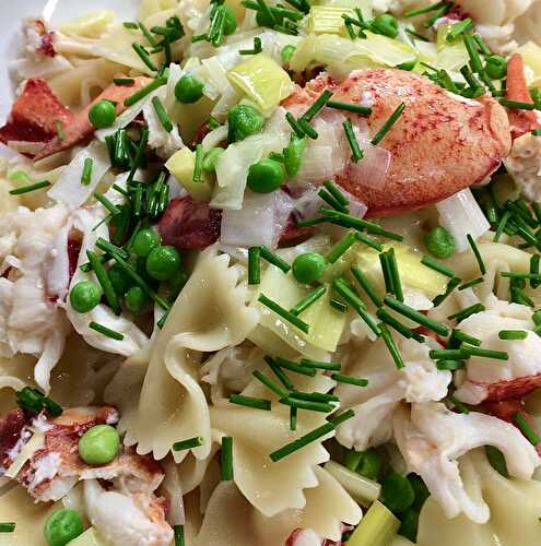 Lobster Pasta with Leeks, Peas, and Chive Brown Butter.