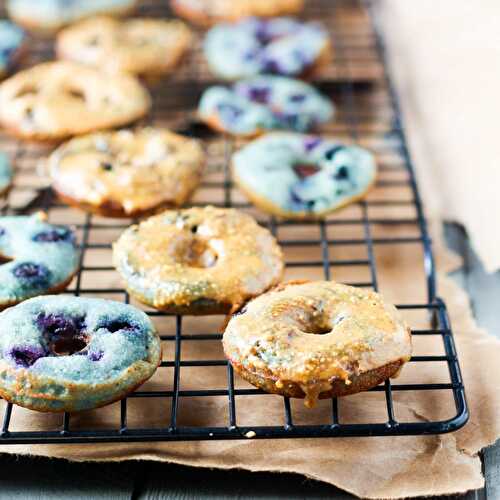 Wild Blueberry Mini Donuts are a sweet treat bursting with fresh blueberry flavored and covered with a sweet peanut butter glaze.