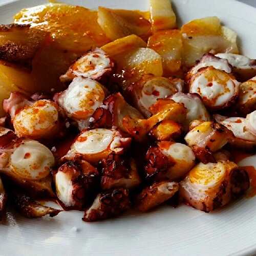 Recipe Galician octopus instant pot - How about a dish of octopus if you like them? The whole beast will be steamed before being chopped up and fry in oil with garlic and herbs.