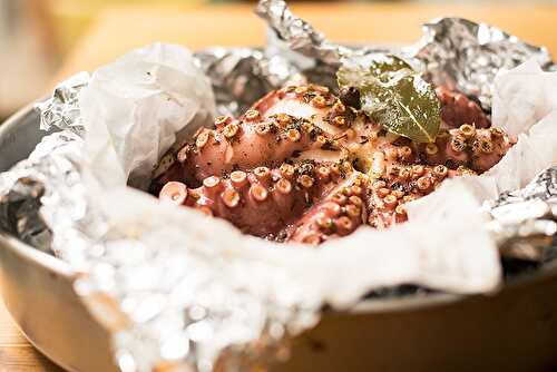 This oven baked octopus recipe is probably the easiest way to prepare octopus! Tender and delicious, it’s the perfect side dish for a Mediterranean seafood dinner.