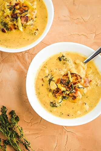 It’s a flavor packed combination of textures and tasty goodness—creamy soup, chock full of dairy and veggies.