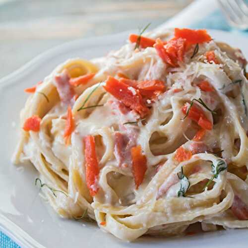 This richly flavorful Smoked Salmon Fettuccine Alfredo is a shining example of simple ingredients combining to make extraordinary dishes! All of the basics are here for an outstanding fettuccine alfredo, but the smoked salmon takes the depth of flavor.