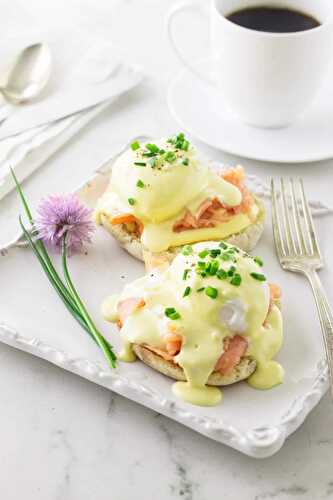 Enjoy this Smoked Salmon Eggs Benedict at home anytime Smoked salmon slices on an English muffin with a poached egg.