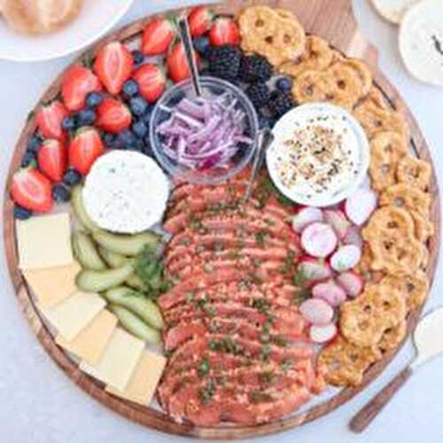 This Smoked Salmon Charcuterie Board is a unique take on a classic grazing board that works especially well for a festive brunch.