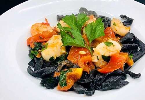 Mixed seafood pairs with tomato sauce, lemon, dill, and Tabasco to make this delicious seafood fettuccine with lemon and dill recipe.