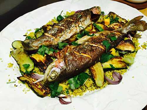This rainbow trout with courgette and cauliflower couscous dish looks like an ambitious recipe, it is not and it tastes fantastic.