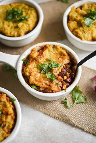 Delicious black bean and vegetable chili topped with cornbread and baked together in a skillet for a fabulous weeknight meal your whole family will love!