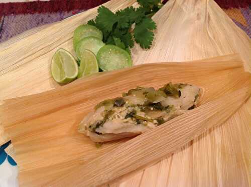 Tamales from Scratch : wrapped in baking paper instead of corn husk, easy to prepare in your stove top steamer, filled with pork and served with Pico de Galo.