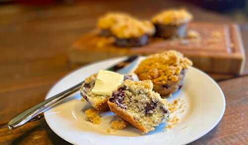 These muffins are just delicious, with sweet blueberries, a hint of zesty citrus, and crunchy crumbly brown sugar baked on top!