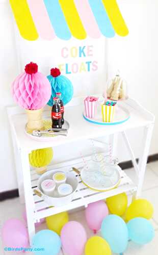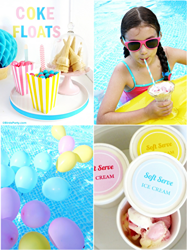 Summer Pool Party Ideas & Coke Float Station - ideas on DIY decorations, ice cream stand and fun food for an awesome kids pool party!