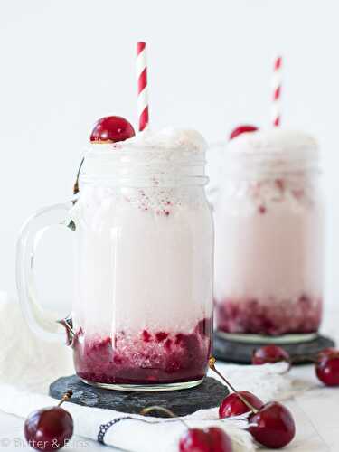Light and refreshing Black Cherry Cream Sodas are a perfect treat for summer! A fresh cherry syrup is lightened with coconut cream and spiked with a black cherry sparkling water.