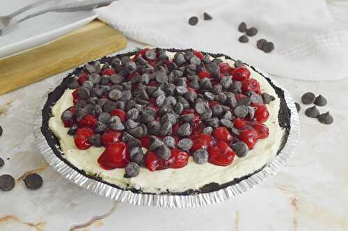 This no-bake creamy, velvety cheesecake has all the good things! White chocolate, vanilla cheesecake, whipped cream and cherry pie filling and a delicious nutty graham cracker crust.