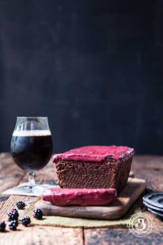 One Bowl Chocolate Stout Loaf Cake with Blackberry Frosting