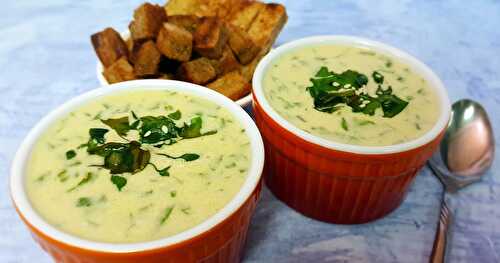 This cream of spinach soup combines spinach, potatoes and more with broth for a rich soup.