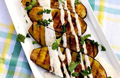An Afghan dish consisting of pan fried eggplant and tomatoes topped with a garlic yogurt sauce.