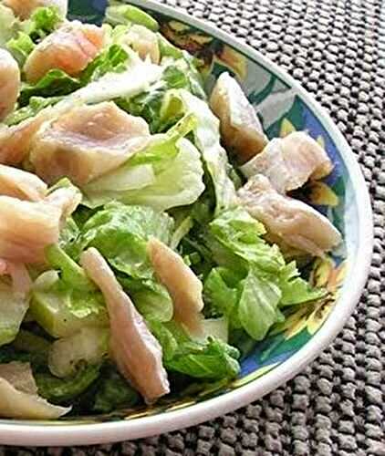 Delicious summer smoked mackerel salad is a combination of smoked mackerel with apples, brought to taste with pickles, capers, lemon juice and mayonnaise.