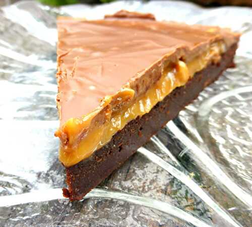 This simple spelt brownie cake recipe has gooey salted cashew caramel, a soft spelt flour brownie layer and a milk chocolate topping.
