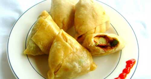 Indian vegetable samosas are a popular choice as a snack or served as party food.