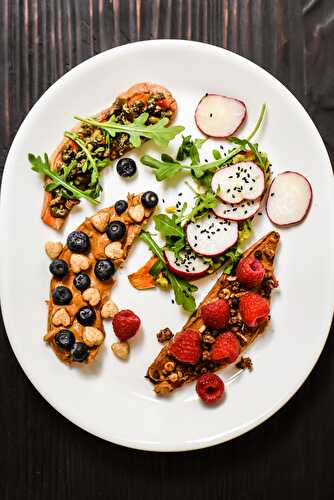 Switch out you typical toast with this very non-boring and super delicious versions using non other than your friendly neighborhood sweet potato!