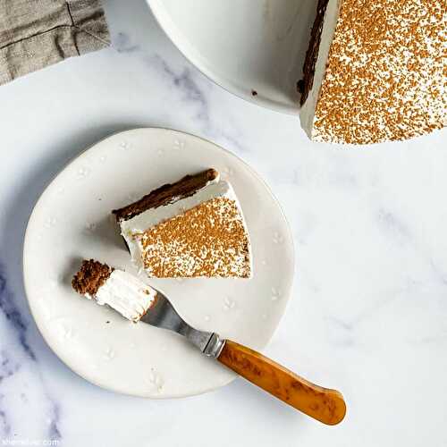 This easy bakery quality cake is a chocolate lovers dream with a fluffy soft cake, a creamy dreamy mascarpone filling studded with chocolate chips, and a luxurious fudge frosting.