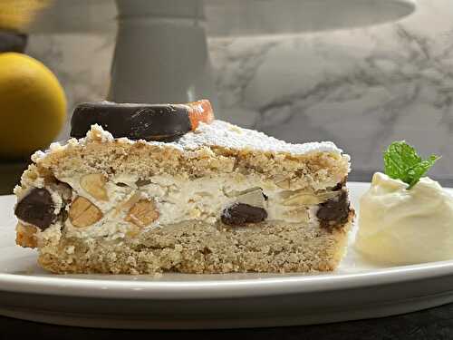 Italians love ricotta in their cakes, together with the crunchy toasted almonds, tangy candied citrus peel and small nuggets of rich chocolate, this cake is full of texture and flavour.