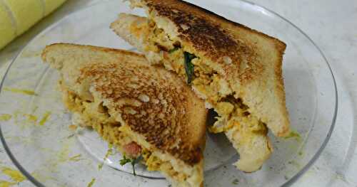 Scrambled Egg & Mushroom Sandwich is packed with cooked mushrooms and a delicious Indian -style egg bhurji.
