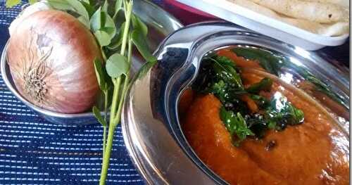 Tamarind Onion Chutney is an accompaniment that people serve with South Indian Dosa.