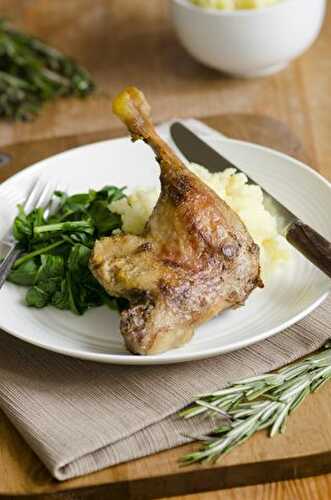 Duck legs are roasted with potatoes and thyme to make this flavor-packed roast duck leg with potatoes dish.