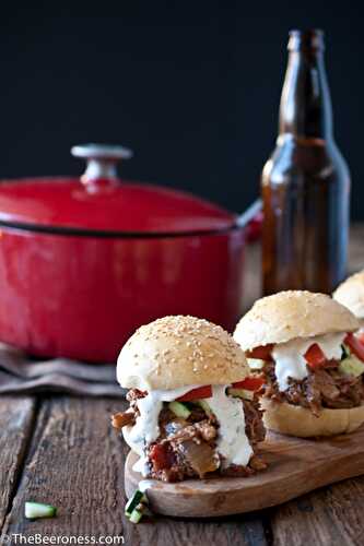 Beer Braised Pulled Pork Sliders with Chipotle Beer Cheese Sauce