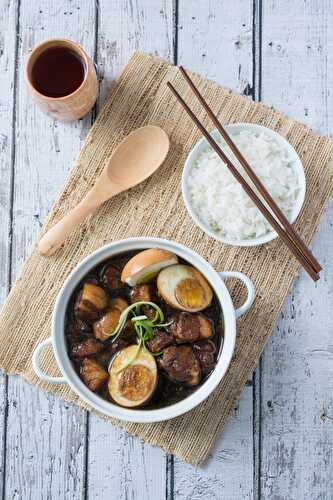 Pork shoulder braised with onion, garlic and Chinese five-spice powder then served over steamed jasmine rice.