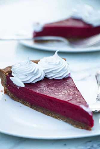A Cranberry Curd Tart that's sweet and tangy, paired perfectly with a pecan crust and Swiss meringue.