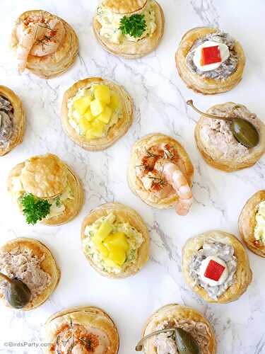Retro Vol-au-Vent Party Appetizers - learn to make puff pastry shells recipe plus 4 delicious fillings for any occasion or celebrations!