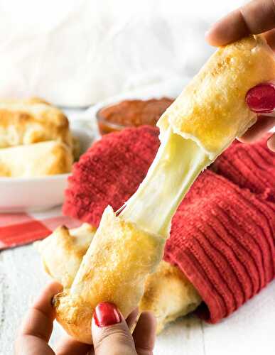 These Easy Cheese-Stuffed Breadsticks only take minutes to prepare and are filled with gooey melted cheese that stretches for miles!