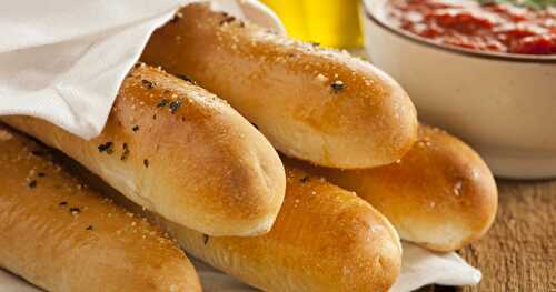 Soft Homemade breadsticks infused with garlic, oregano, parsley, and basil.