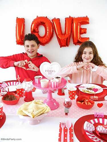 Valentine's Day Crepe Party - simple and fun ideas to hosting kids, family or friends for Love Day with a delicious pancake desserts tablescape!