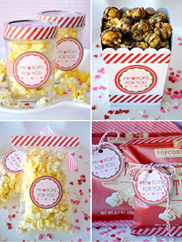 Valentine's Day DIY Party Favors & Free Printables - Easy and Quick Party favor or Gift Ideas to make with free printables popcorn tags!