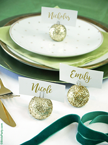 DIY Glitter Baubles Ornament Place-Card Holders - perfect last-minute craft to make for your Christmas Holidays party tables!