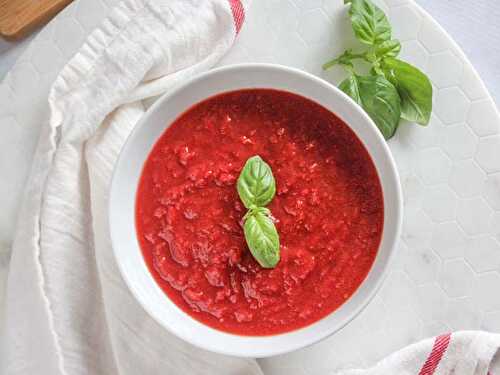 You're going to LOVE this homemade tomato sauce! Made either on the stovetop or fast in the Instant Pot, this healthy tomato sauce recipe has a ton of hidden vegetables that's perfect for picky eaters.