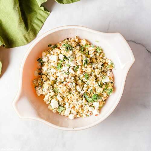 This salad version of Mexican street corn is a sweet, spicy and tangy corn salad mixed with a creamy dressing (Mexican street corn salad (esquites)