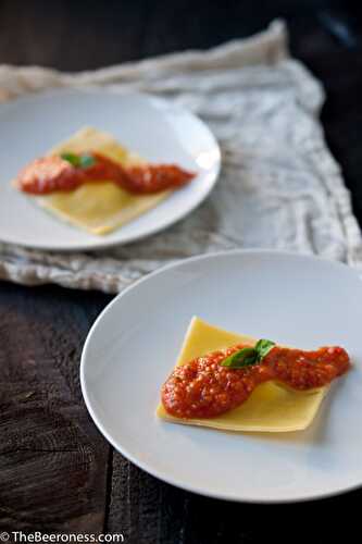 Goat Cheese Raviolis with Blistered Sugar Plum and Hefeweizen Marinara & How to Make Homemade Raviolis, KitchenAid pasta roller ravioli, homemade ravioli