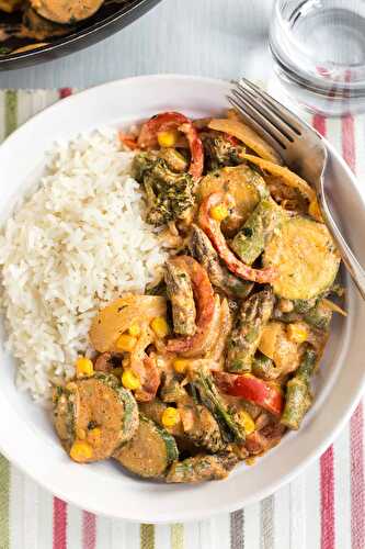 This vegetable stroganoff is a great fridge-clearer, packed with all sorts of veggies in a rich and creamy stroganoff sauce.